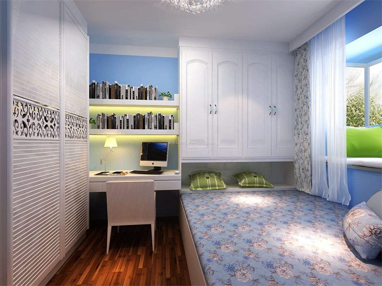 2、对于小卧室墙面尽量选择明亮的色调,明亮色调不仅可以增加卧室的采光性,而且能带给人一种扩大卧室空间面积的视觉效果。