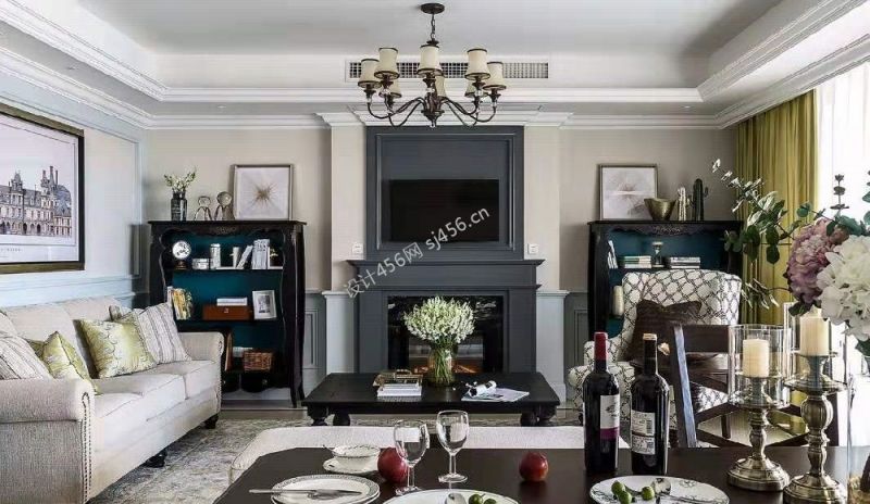 美式风格152平米三居室客厅墙面装饰装修效果图