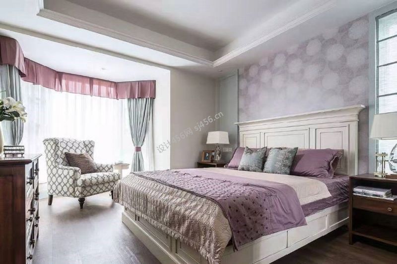 152平米三居室卧室床头背景墙壁纸装修效果图