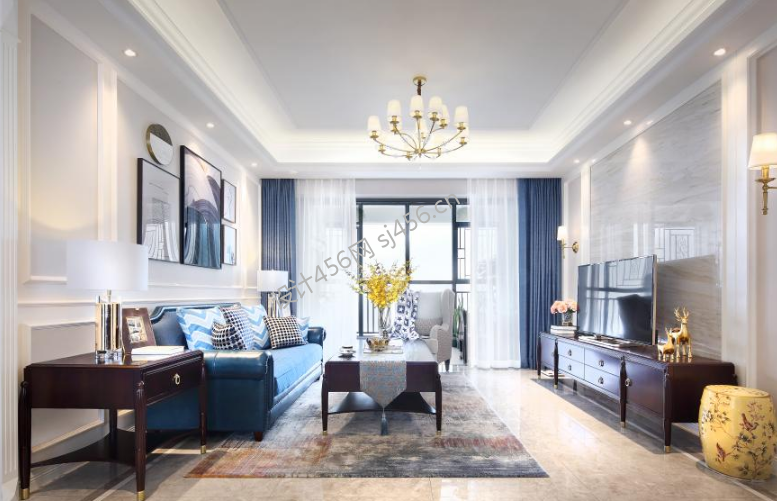 美式风格101平米二居室客厅装饰画装修效果图