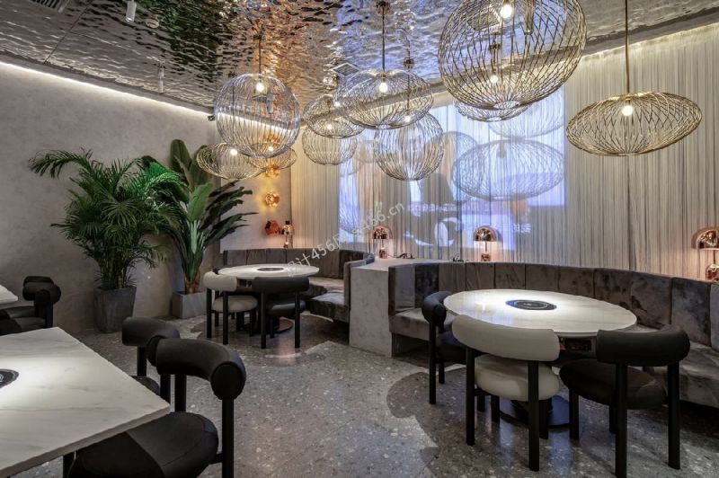 详情190平现代风格火锅店吊灯装修效果图