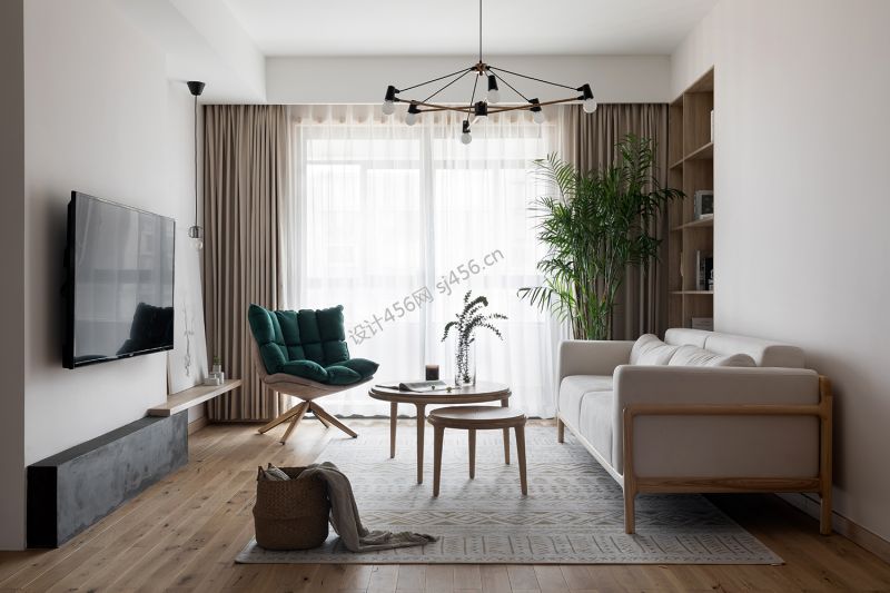 日式风格103平米三室两厅客厅装修效果图