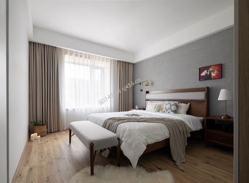 日式风格103平米三室两厅卧室装修效果图