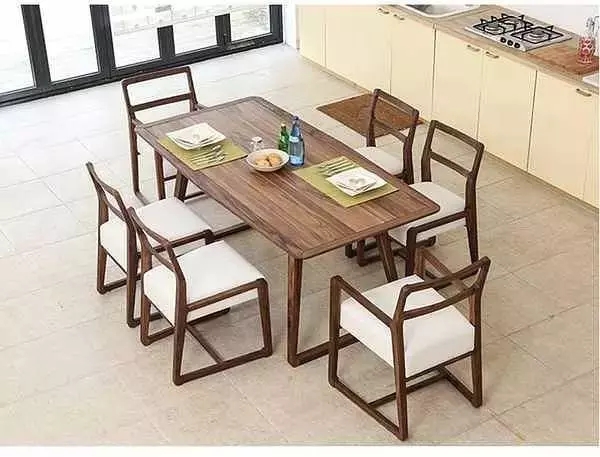 明明是用了板材的家具,故意避重就轻,号称是“全实木”,比如下图这种餐桌,四周用了实木边框,中间面板是中纤板贴木皮,成本比全实木桌子要低一大截,如果没有标注清楚用料,那就是坑你没商量。