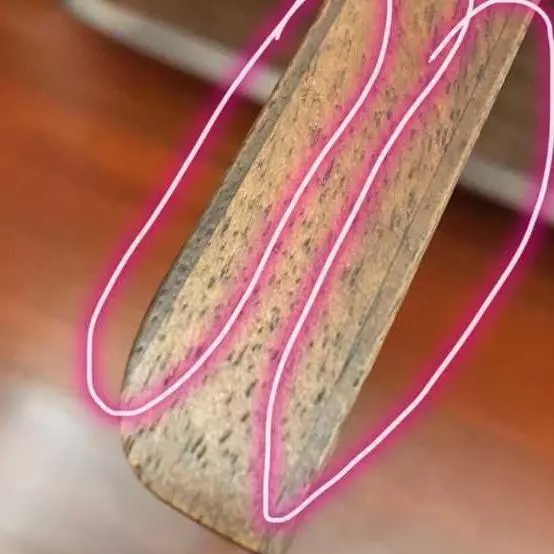 二是看横截面,真正一块木板打磨出来的面板,表面和四边纹路应该是连续的,而贴皮家具只能贴到两面,四边的纹路必然是错开的,就像下面这块板一样。
