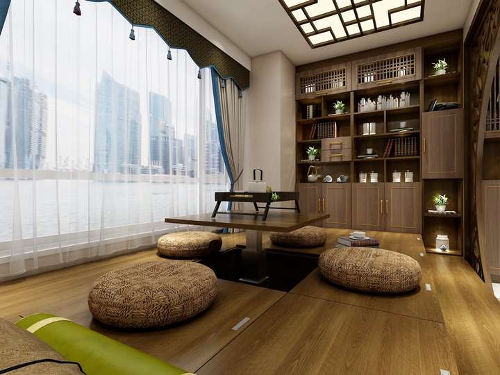 去掉厚重的墙体,让阳台与客厅相连,运用镂空拱门扩大空间视线,结合榻榻米打造成专门的休闲空间或茶室,再适合不过,喝茶聊天,享受美好时光。