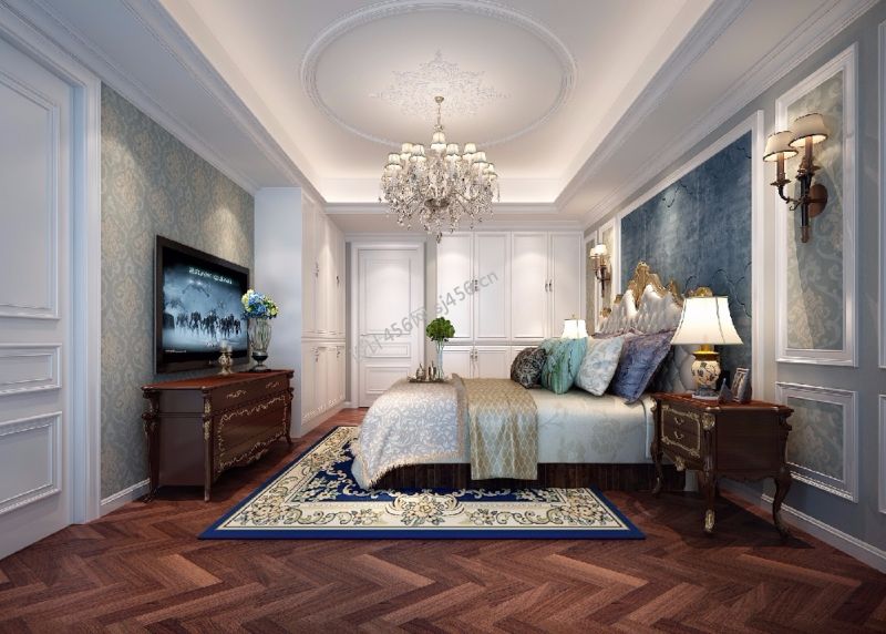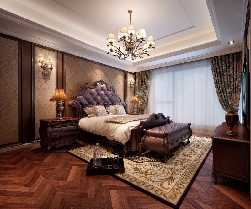 欧式古典风格别墅卧室装修样板间