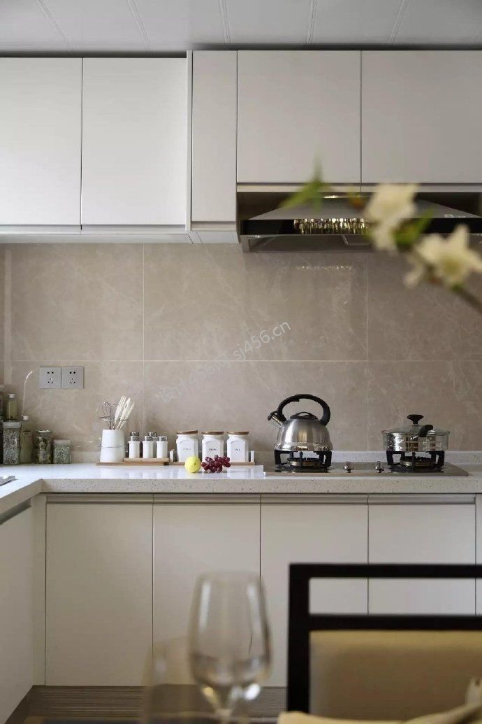120㎡现代中式三居厨房白色橱柜装修实景图