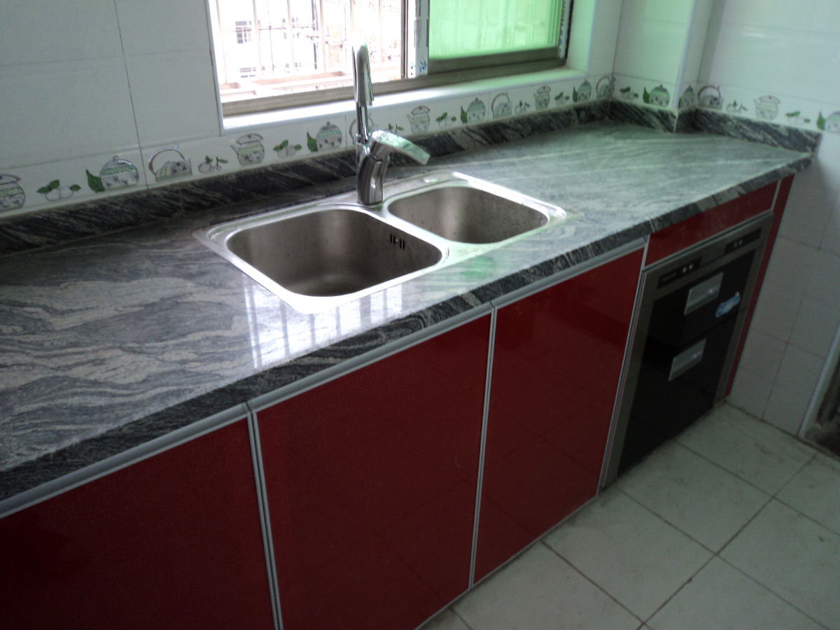 大理石橱柜不怕水,一般的污渍只要用毛巾一擦就没了,比较严重的油污只要加上一点洗洁精就能擦掉。