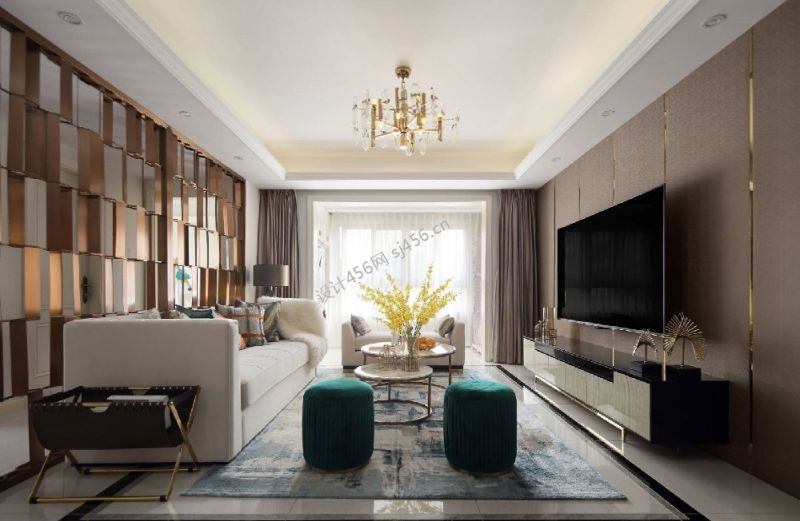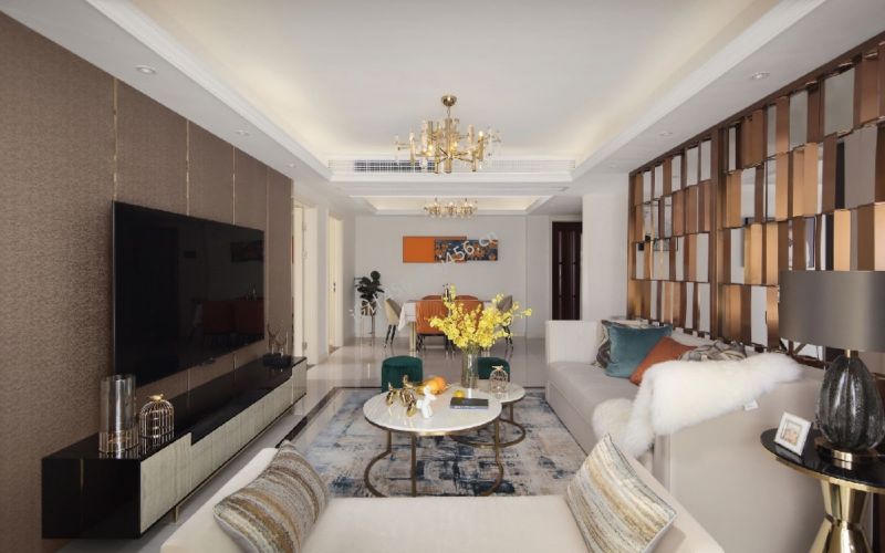 135平米三居室现代轻奢客厅装修效果图