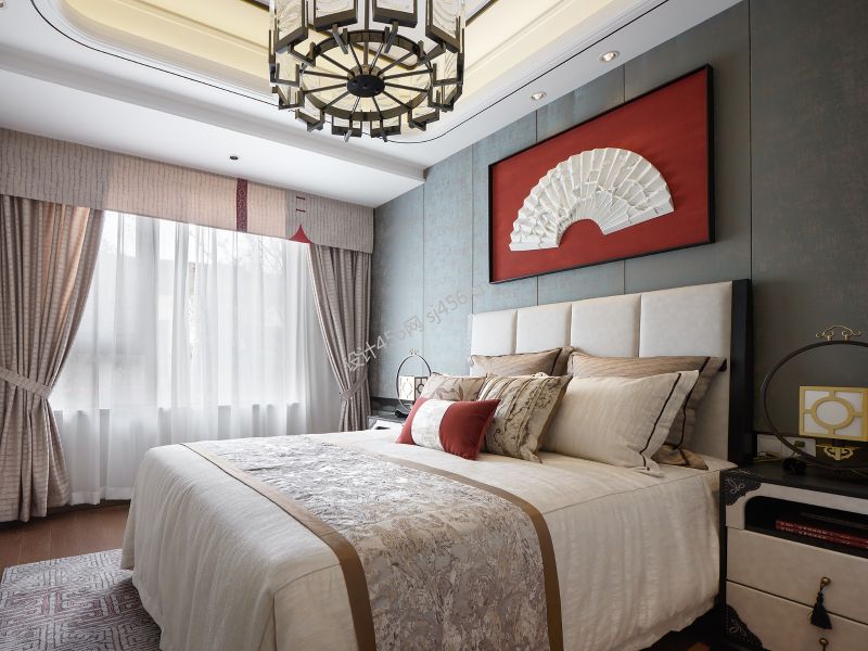 新中式风格196平米别墅卧室床头装修效果图欣赏