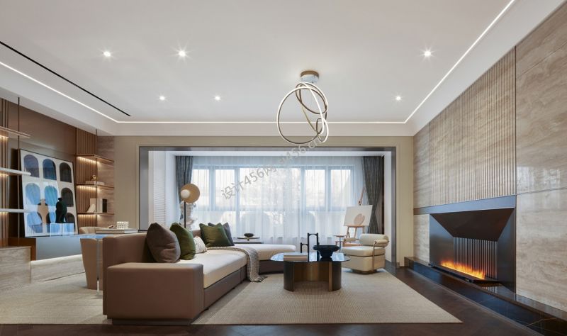 115平三居室现代风格客厅吊灯装修效果图