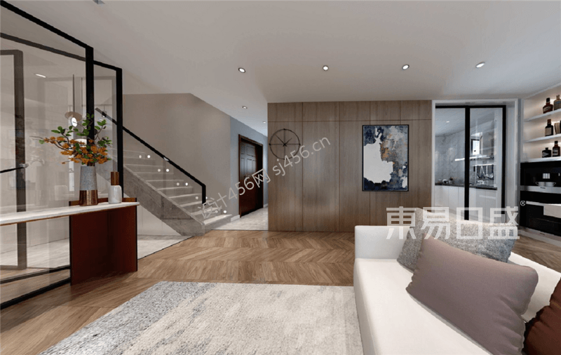 设计理念: 客户定位:男主年轻地产中层,女主生完宝宝,全职太太阶段,三口之家的改善提升型居所; 现代简约的格调定位;装修主色调以灰色为主,局部以木纹和石材材质穿插。陈设色调灰色、蓝色、橘色,烘托现代风的优雅与质感; 空间分配:一层以中西厨、餐厅、客厅、开放式书房、卫生间、玄关功能划分;二层为主人独享卫浴空间和儿童房空间、露台空间,业主短期内孩子5年内和孩子同住,照顾奶娃,儿童房做娱乐室,根据成长需要来增加软装与布局规划。此案设计是遵循业主三口之家需求的成长,结合业主的收纳习惯,匹配相应喜欢的材质,全屋无主灯为主,装饰灯为辅,以质感为主线,贯穿风格。 客户定位:男主年轻地产中层,女主生完宝宝,全职太太阶段,三口之家的改善提升型居所; 现代简约的格调定位;装修主色调以灰色为主,局部以木纹和石材材质穿插。陈设色调灰色、蓝色、橘色,烘托现代风的优雅与质感; 空间分配:一层以中西厨、餐厅、客厅、开放式书房、卫生间、玄关功能划分;二层为主人独享卫浴空间和儿童房空间、露台空间,业主短期内孩子5年内和孩子同住,照顾奶娃,儿童房做娱乐室,根据成长需要来增加软装与布局规划。此案设计是遵循业主三口之家需求的成长,结合业主的收纳习惯,匹配相应喜欢的材质,全屋无主灯为主,装饰灯为辅,以质感为主线,贯穿风格。