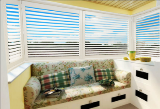 窗帘是大家最熟悉的窗饰品,通常只安装在室内,也有部分人会安装在阳台上,虽然起到了遮阳作用,但无法调光,当拉上窗帘时,整个阳台光线都是昏暗的,也影响整个阳台对外的欣赏效果。