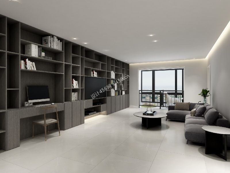 现代简约风格128平客厅书柜效果图