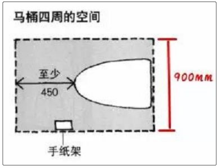 马桶安装完之后,这马桶与其墙面之间的距离最少不得小于450cm,而马桶左右的空间总和不得小于90cm。