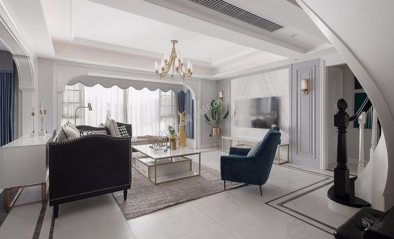 美式轻奢风165平客厅灯具装修效果图
