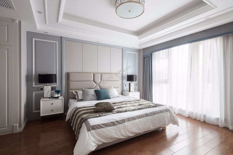 美式轻奢风165平卧室窗帘装修效果图