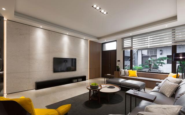 一字形的电视柜采用壁挂的设计,柜子底部搭配一条灯带,看起来显得更轻盈,另外这种设计,也很方便搞清洁,扫地机清扫也方便,不会有卫生间死角。