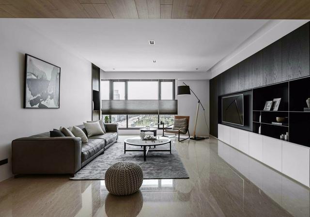 电视柜一整面墙设计可以采用白色的门板搭配黑色门板,这样黑白搭配比较经典也不容易过时,比较适合现代简约风、北欧风、台式风等。