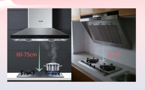 4、现在的厨房是少不了抽油烟机的顶吸式的油烟机离灶台的的高度是65厘米到75厘米,侧吸式油烟机的底部的地方离灶台的高度是35厘米到45厘米,油烟机离灶台的高度是硬性的指标,不要弄错了哟