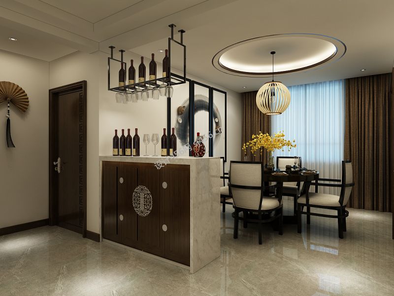 2020大气新中式家装效果图 餐厅整体效果图