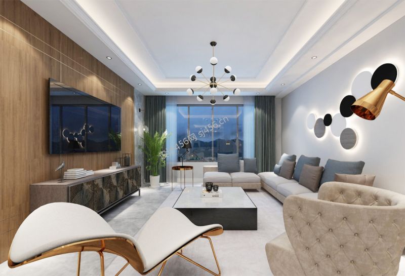 133平米三居室现代简约风格客厅装修效果图欣赏