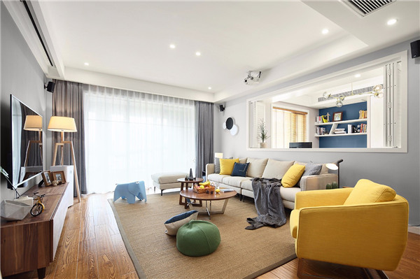 今天小编要跟大家来分享的这套家居装修案例是一套面积为127㎡的新房,装修风格为混搭北欧风,而在颜色的布置上深浅跳跃,但效果还是挺好。而在格局设计上也比较独特,尤其是客厅沙发背景墙做了一个内窗,效果也挺好的。那下面我们就一起来看看详细的细节效果图吧!