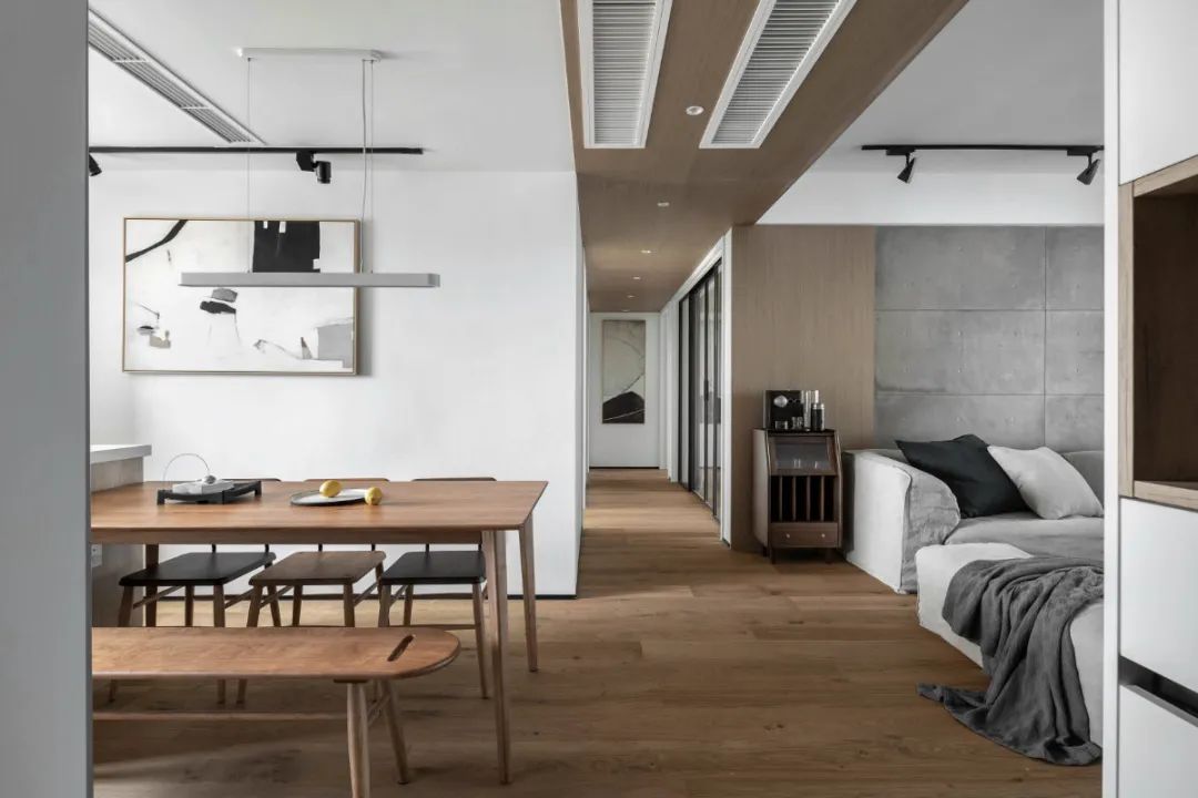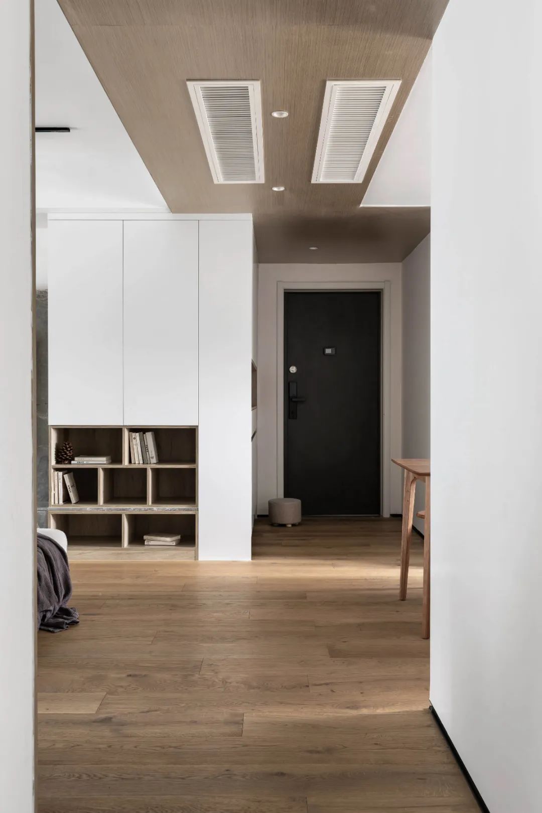 ▲玄关区域的天花是木色的吊顶,一直延伸到走廊位置,整体空间感非常的简约自然。玄关侧边的收纳柜,有着充裕的收纳储物位置,摆上一个小换鞋凳,也显得更加的简洁大方。
