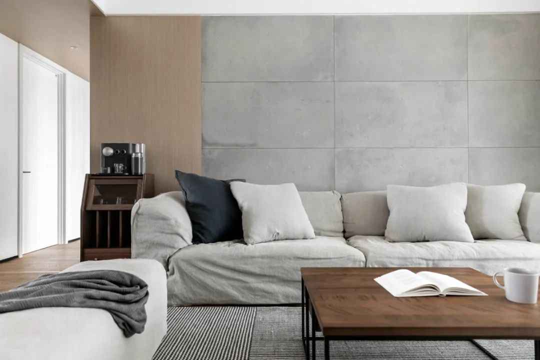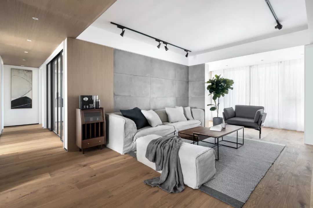 ▲灰色地毯与沙发布置,结合灰色沙发墙的质感,让空间充满低调奢华的档次。