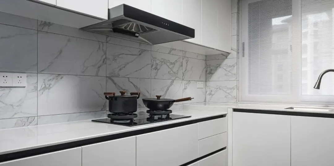 厨房的橱柜是根据女屋主身高定制,洗菜盆区域和炒菜区域的台面有高低差,照顾好腰、做饭才更舒适。