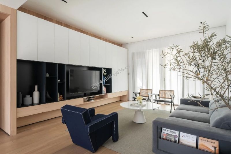 132平三居室现代简约风格客厅装修实景图
