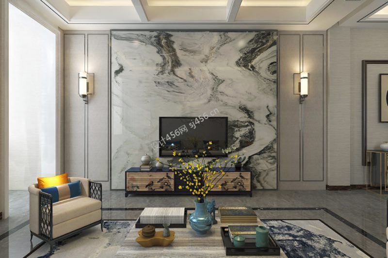 2020新中式别墅室内设计 新中式别墅背景墙效果图