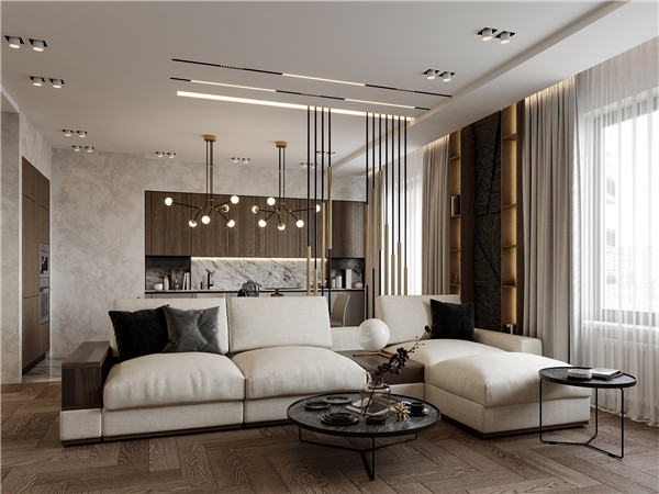 这套轻奢新居给人的感觉是明亮和恬静优雅的,与其他风格不同,该案例更加要求空间的光鲜,通常会加入光滑的石材和靓丽的灯光的元素,体现出奢华、洁净、时尚的高端美感。