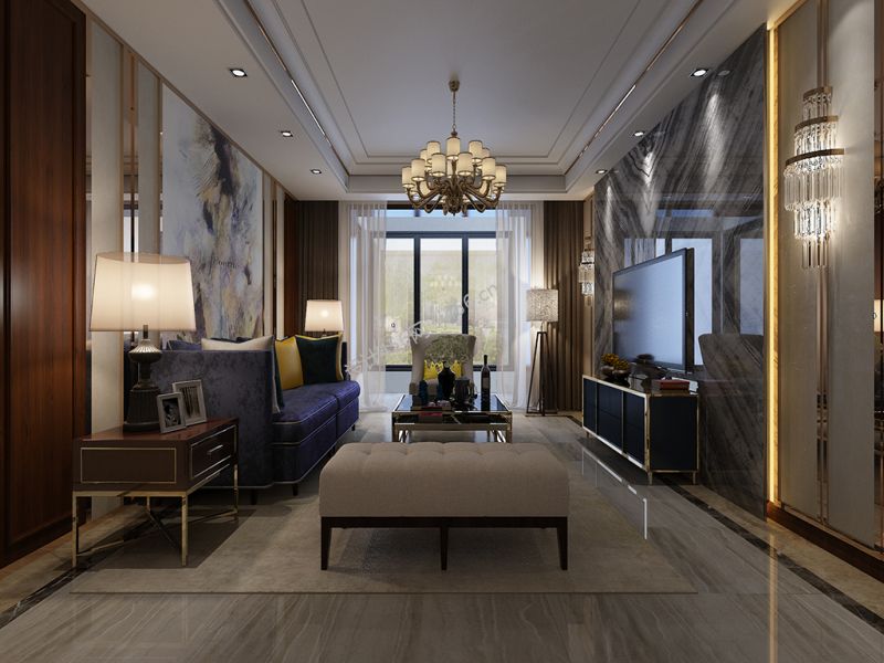 轻奢风格136平米三居室客厅吊顶装修设计效果图