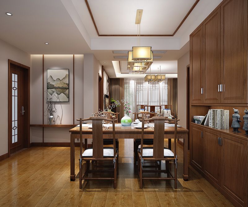 新中式风格120平米三居室餐厅餐桌装修设计效果图