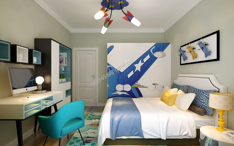 北欧风123平米三居室卧室床装修设计图