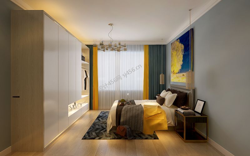 北欧风123平米三居室卧室衣柜装修设计图