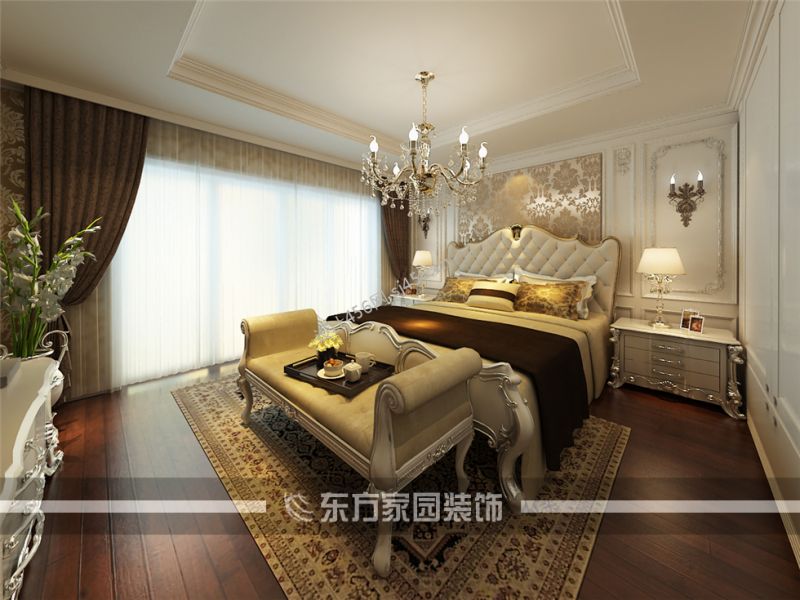 欧式风320平米别墅卧室背景墙装修设计图