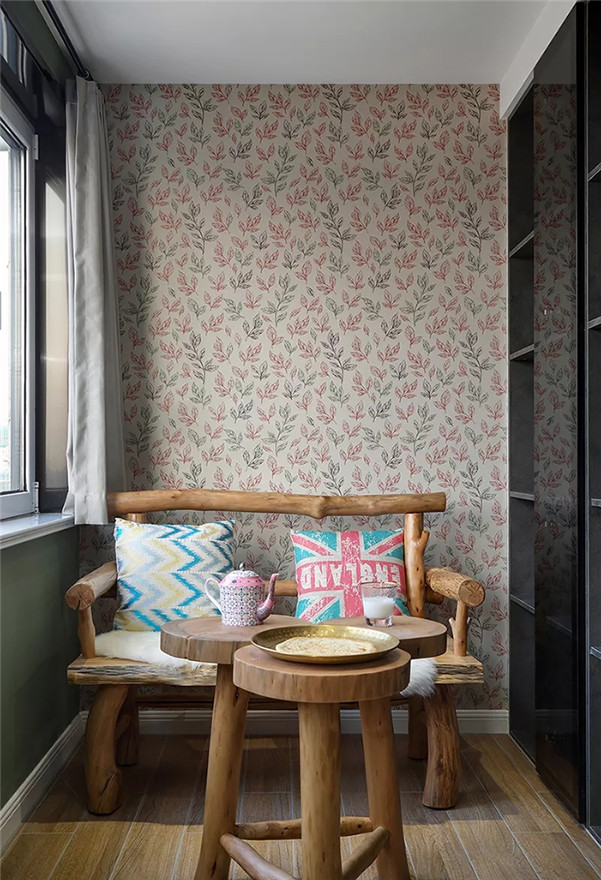 茶绿色元素利用在了带收纳抽屉的飘窗上,自然光透过绿色照射进来,让整个空间更多了一层迷离梦幻的感觉。