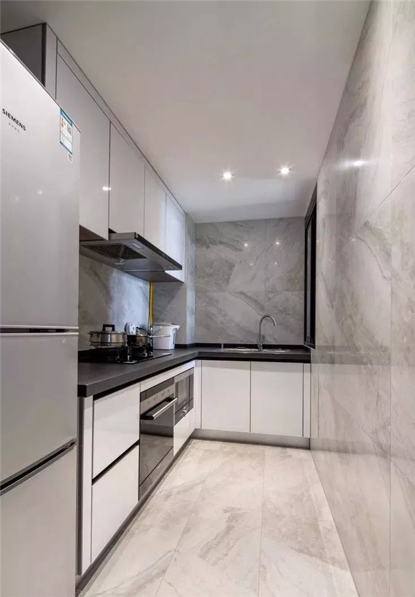 厨房整个用大理石瓷砖铺贴,明快干净。