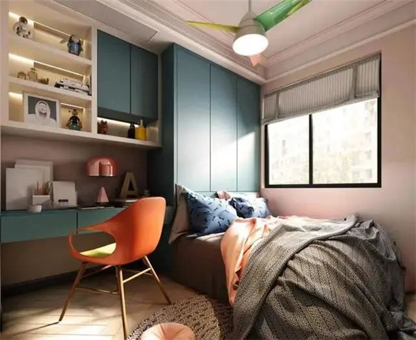 设计师建议:可以把室内指定的儿童房设计成书房+榻榻米+衣柜的组合形式,这样不仅满足学习、储物以及休息功能,同时还能为宝宝创造良好的居住环境。