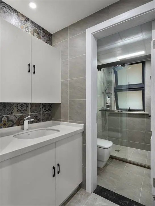 卫生间装修,干湿分离相对比较重要,很多家庭通过拆除半面墙将浴室柜外置,利用通顶推拉门来实现干湿分离的设计,前提条件是卫生间是长条形,这样也比较容易实现干湿分离。