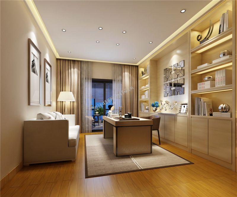 现代风格140平米四居室书房书柜装修设计效果图