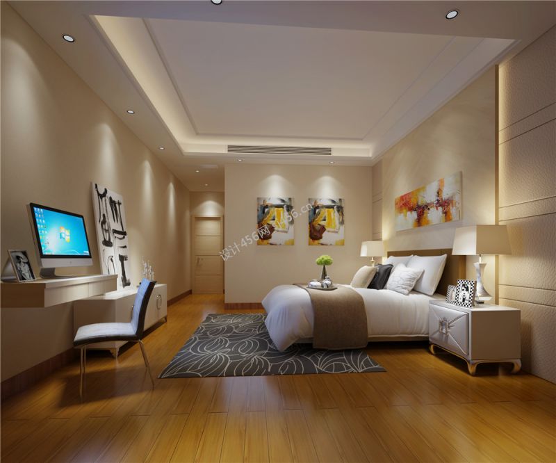 现代风格140平米四居室卧室背景墙装修设计效果图