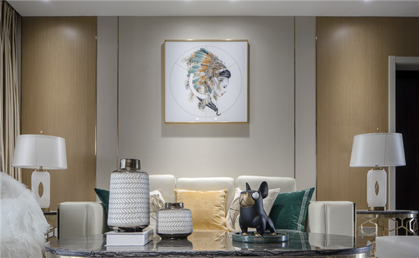 沙发背景墙没有做过多的修饰,一副轻奢艺术挂画,整个空间变得有品味而不落俗套。