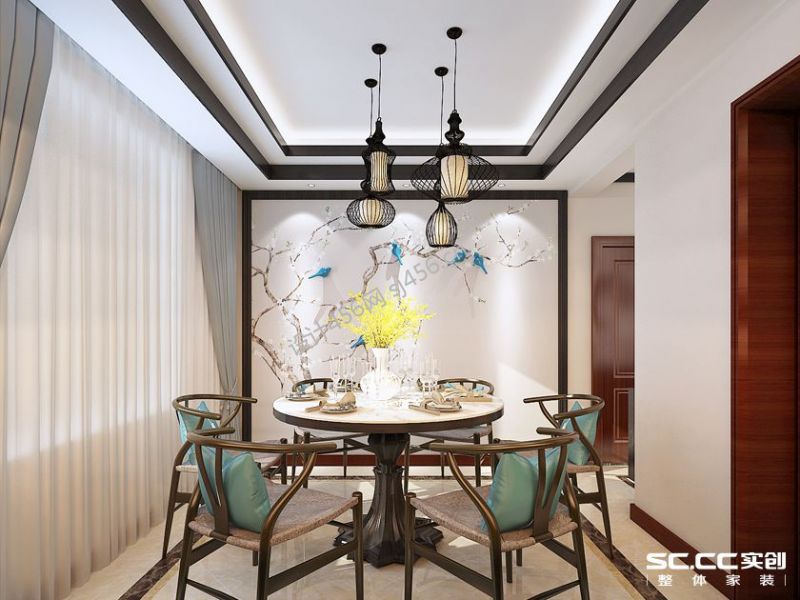 新中式风格190平米别墅餐厅餐桌装修设计效果图