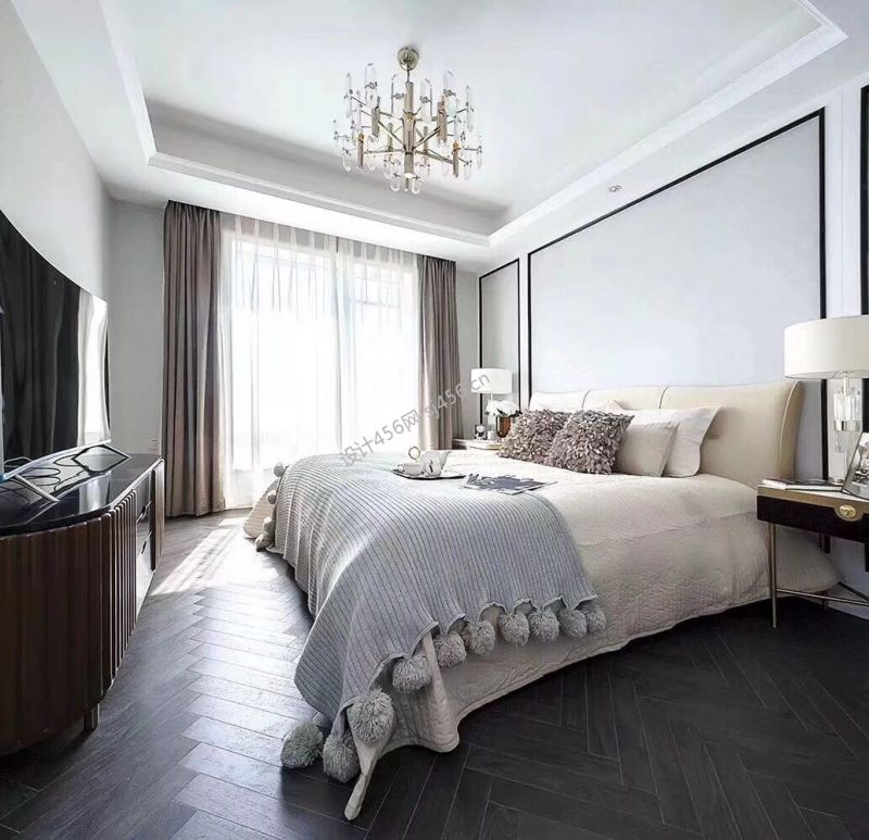 轻奢风格130平米三居室卧室背景墙装修设计效果图