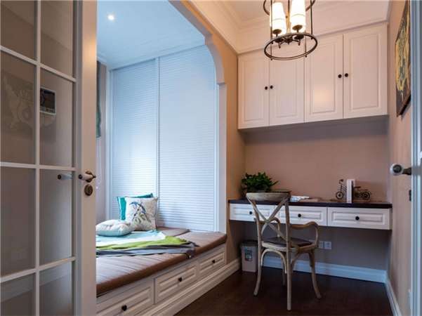 书房作为主人读书写字的场所,对于照明和采光的要求应该很高,所以写字台最好放在阳光充足但不直射的窗边。这样在工作疲倦时还可凭窗远眺一下以休息眼睛。书房内一定要设有台灯和书柜用射灯,便于主人阅读和查找书籍。但注意台灯要光线均匀地照射在读书写字的地方,不宜离人太近,以免强光刺眼。