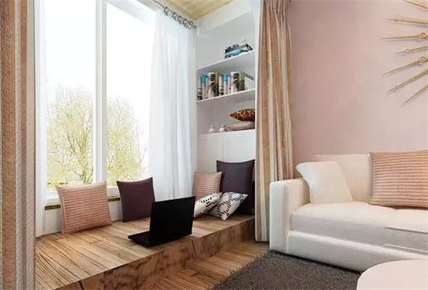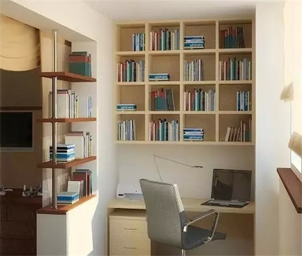 因为小户型的室内面积小, 一般不设单独的书房,所以把阳台与居室打通, 阳台就可以成为崭新的书房。